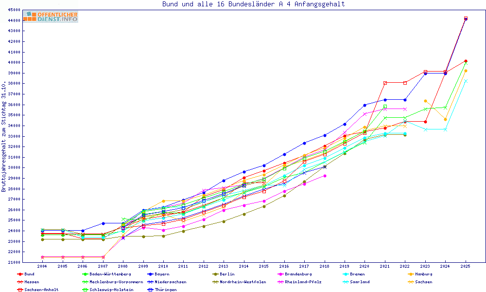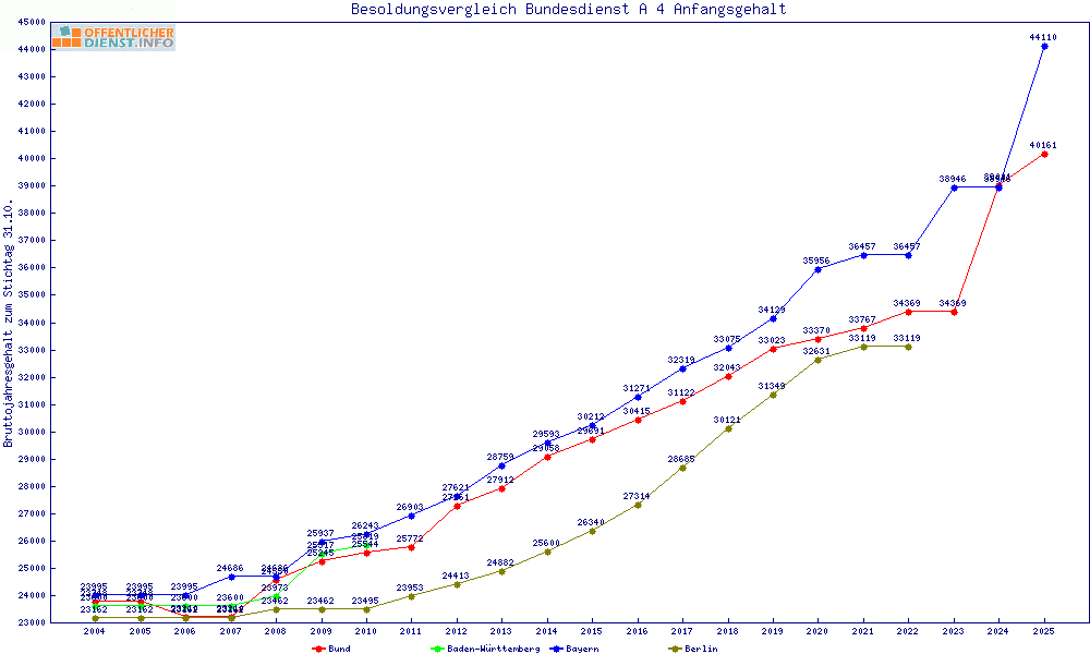 | Besoldungsvergleich A 4 im Jahr 2025 | Anfangsgehalt | ||||||