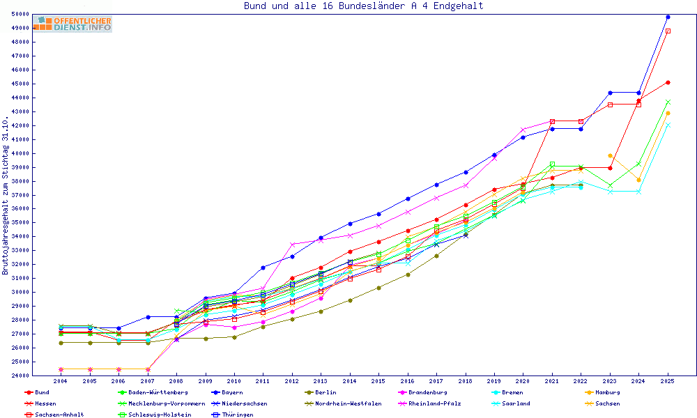 | Besoldungsvergleich A 4 im Jahr 2025 | Endgehalt | |||||||