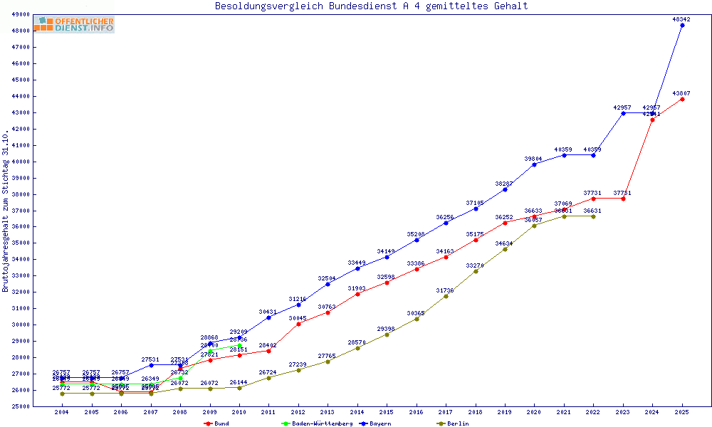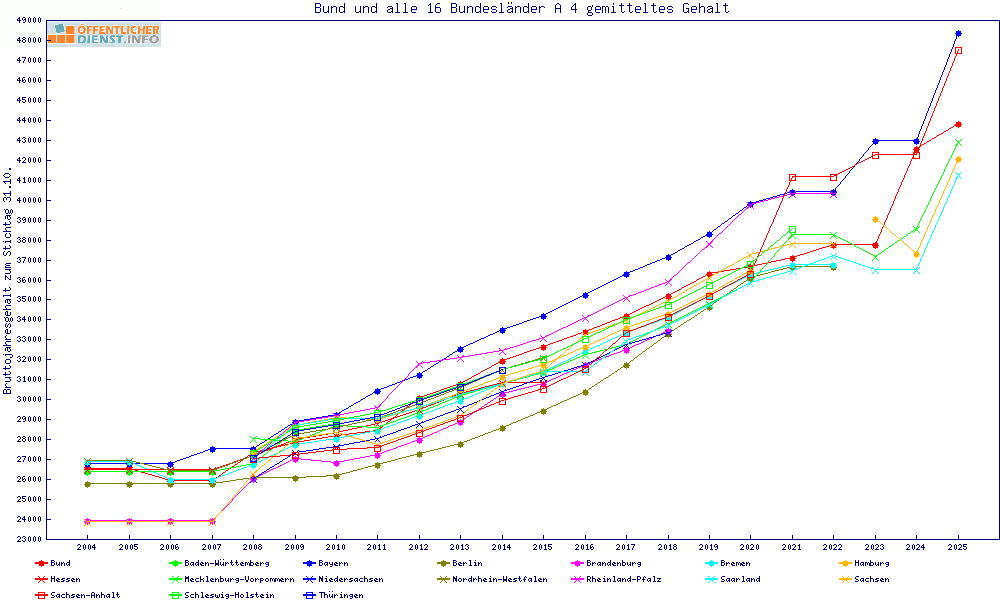 | Besoldungsvergleich A 4 im Jahr 2025 | gemitteltes Gehalt | ||||||