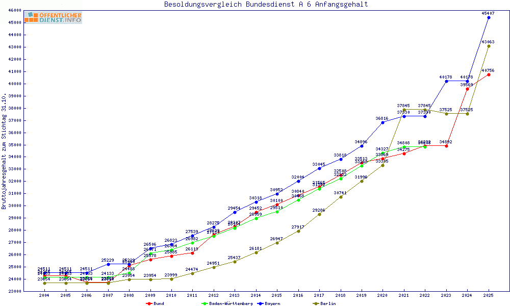 | Besoldungsvergleich A 6 im Jahr 2025 | Anfangsgehalt | ||||||