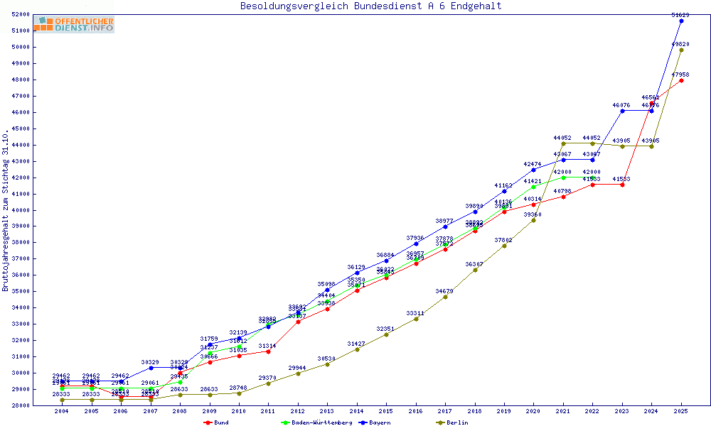 | Besoldungsvergleich A 6 im Jahr 2025 | Endgehalt | |||||||