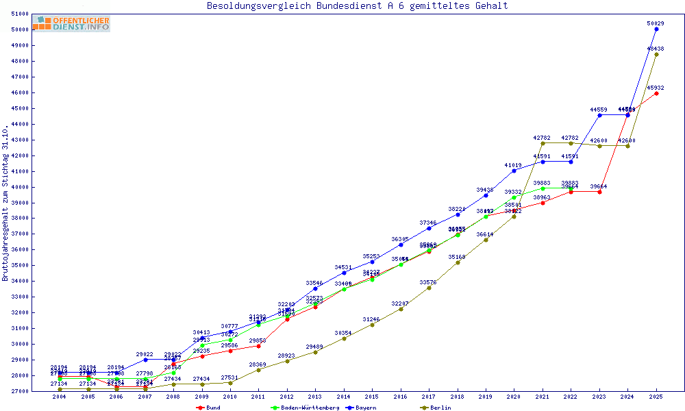 | Besoldungsvergleich A 6 im Jahr 2025 | gemitteltes Gehalt | ||||||
