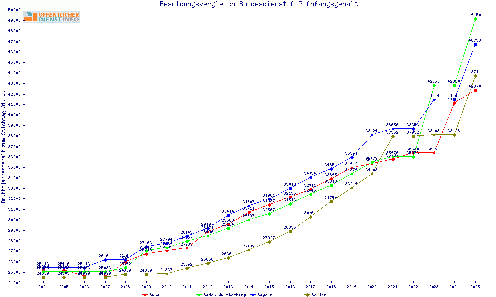 | Besoldungsvergleich A 7 im Jahr 2025 | Anfangsgehalt | ||||||