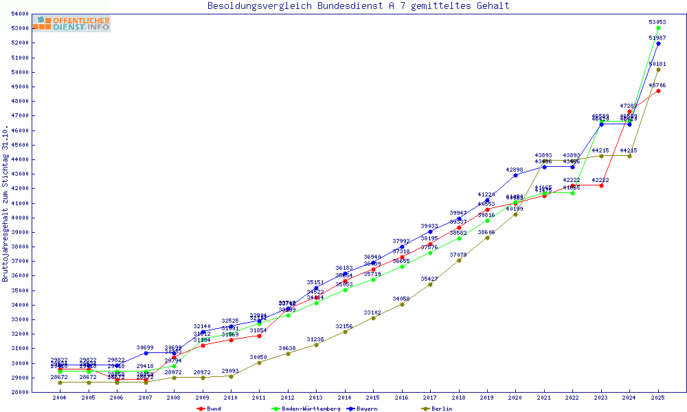 | Besoldungsvergleich A 7 im Jahr 2025 | gemitteltes Gehalt | ||||||
