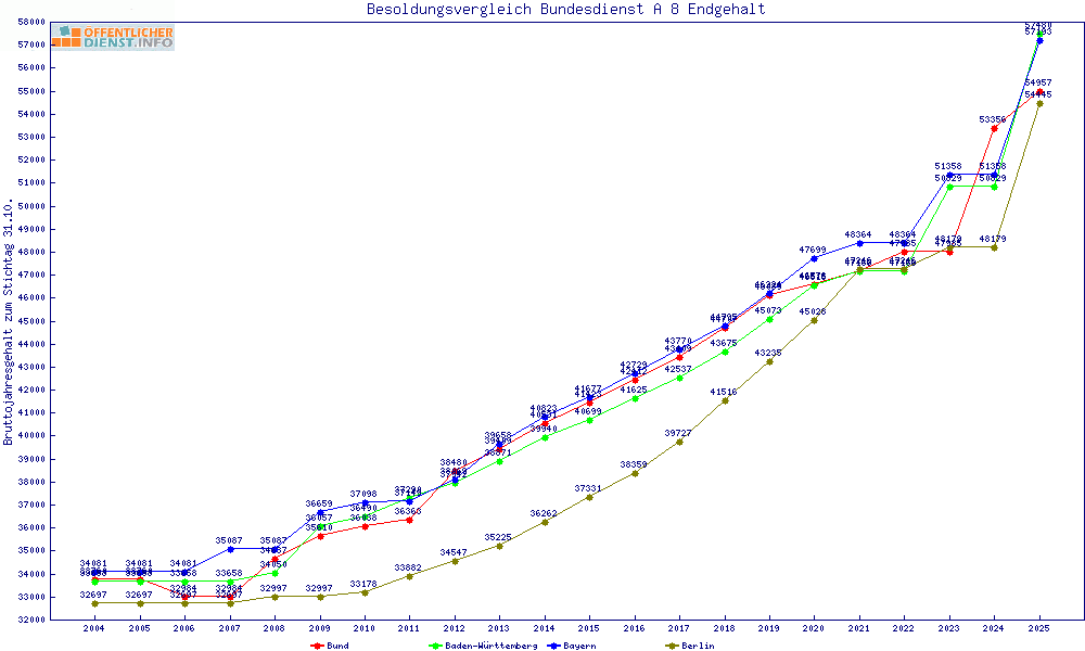 | Besoldungsvergleich A 8 im Jahr 2025 | Endgehalt | |||||||