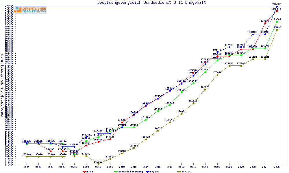 | Besoldungsvergleich B 11 im Jahr 2025 | Anfangsgehalt | ||||||
