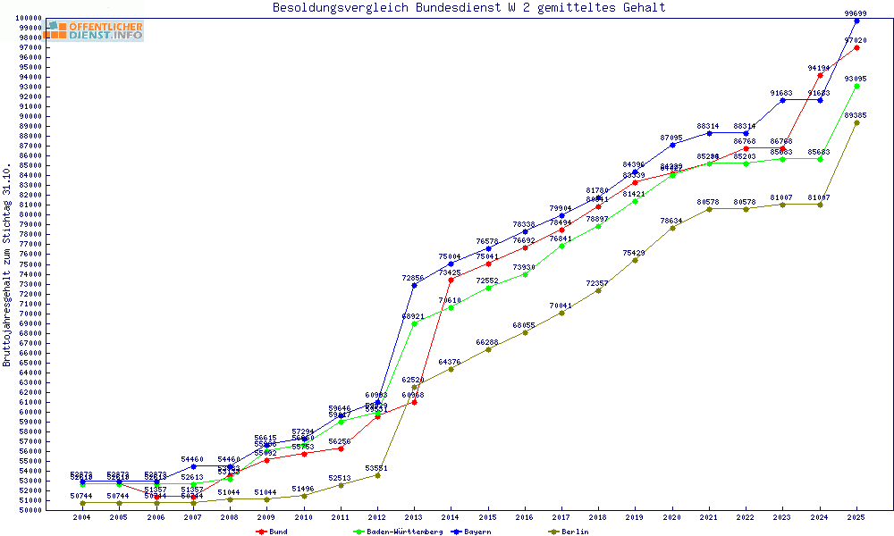 | Besoldungsvergleich W 2 im Jahr 2025 | gemitteltes Gehalt | ||||||