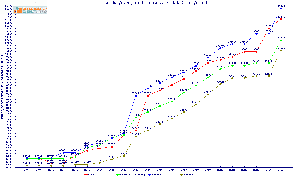 | Besoldungsvergleich W 3 im Jahr 2025 | Anfangsgehalt | ||||||