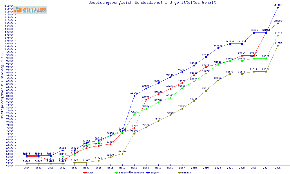 | Besoldungsvergleich W 3 im Jahr 2025 | gemitteltes Gehalt | ||||||