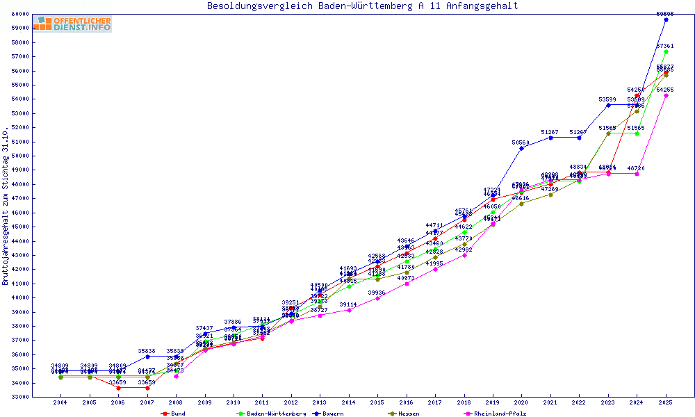 | Besoldungsvergleich A 11 im Jahr 2025 | Anfangsgehalt | ||||||