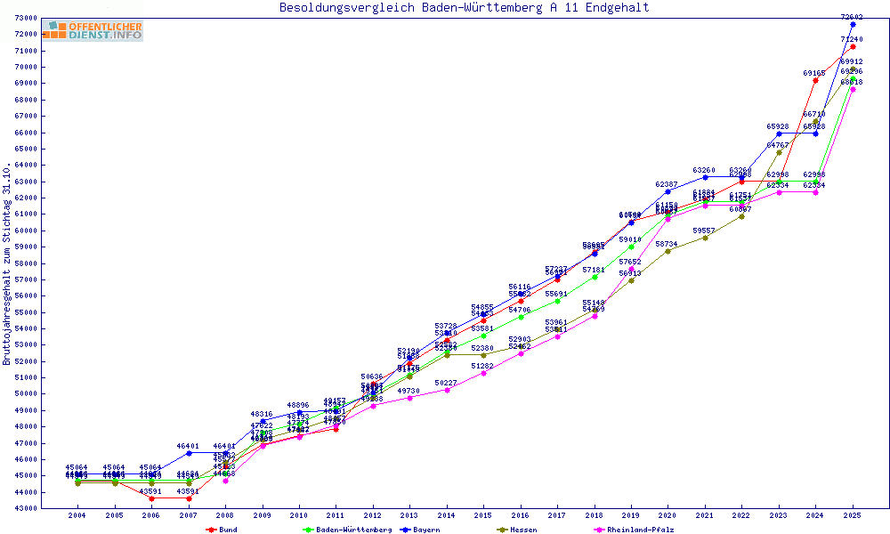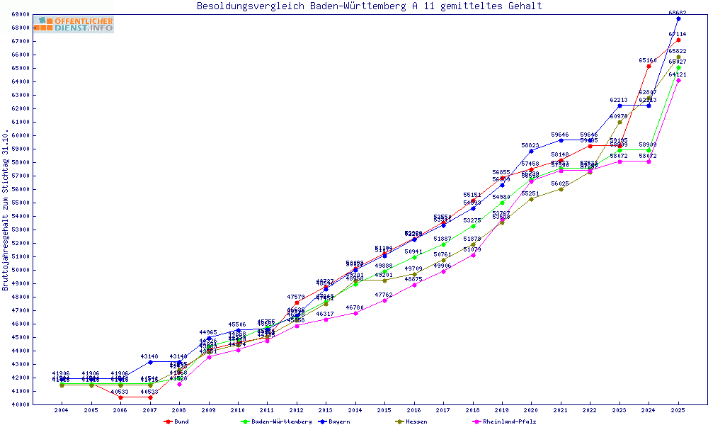 | Besoldungsvergleich A 11 im Jahr 2025 | gemitteltes Gehalt | ||||||