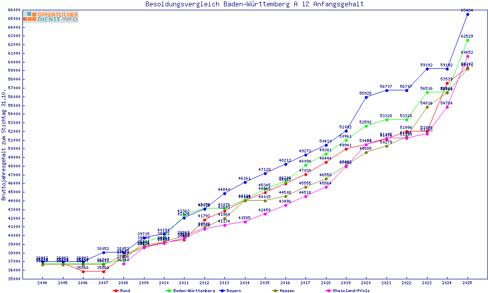 | Besoldungsvergleich A 12 im Jahr 2025 | Anfangsgehalt | ||||||