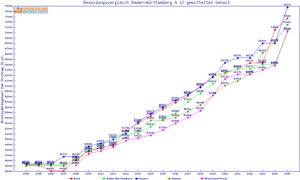| Besoldungsvergleich A 12 im Jahr 2025 | gemitteltes Gehalt | ||||||