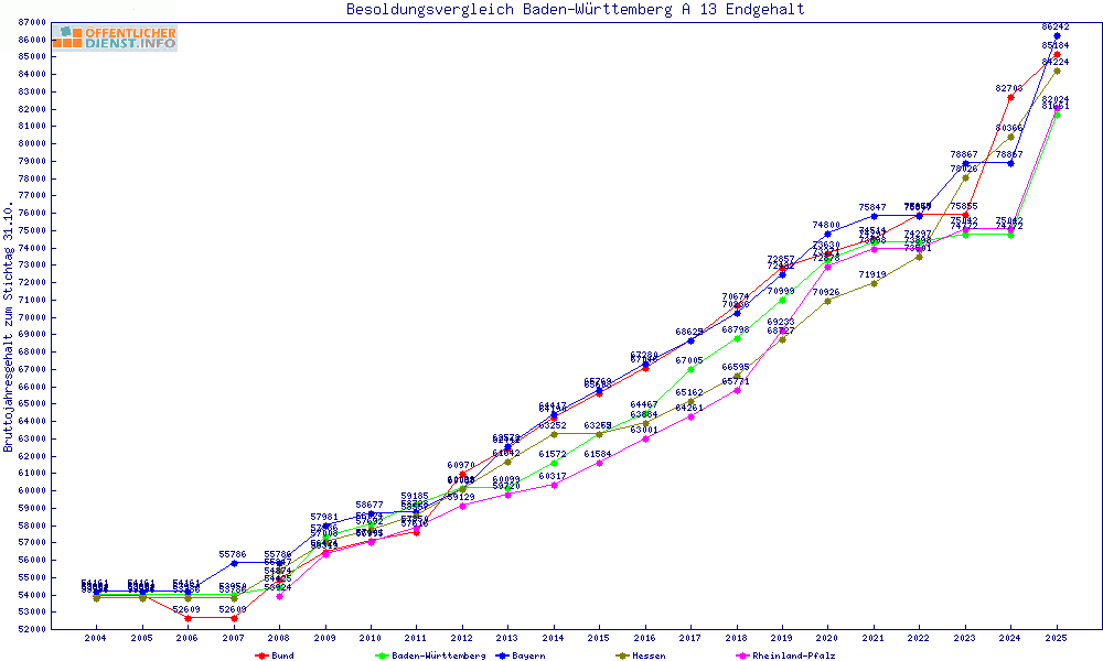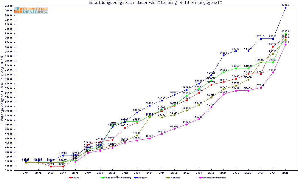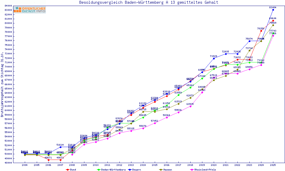 | Besoldungsvergleich A 13 im Jahr 2025 | Anfangsgehalt | ||||||