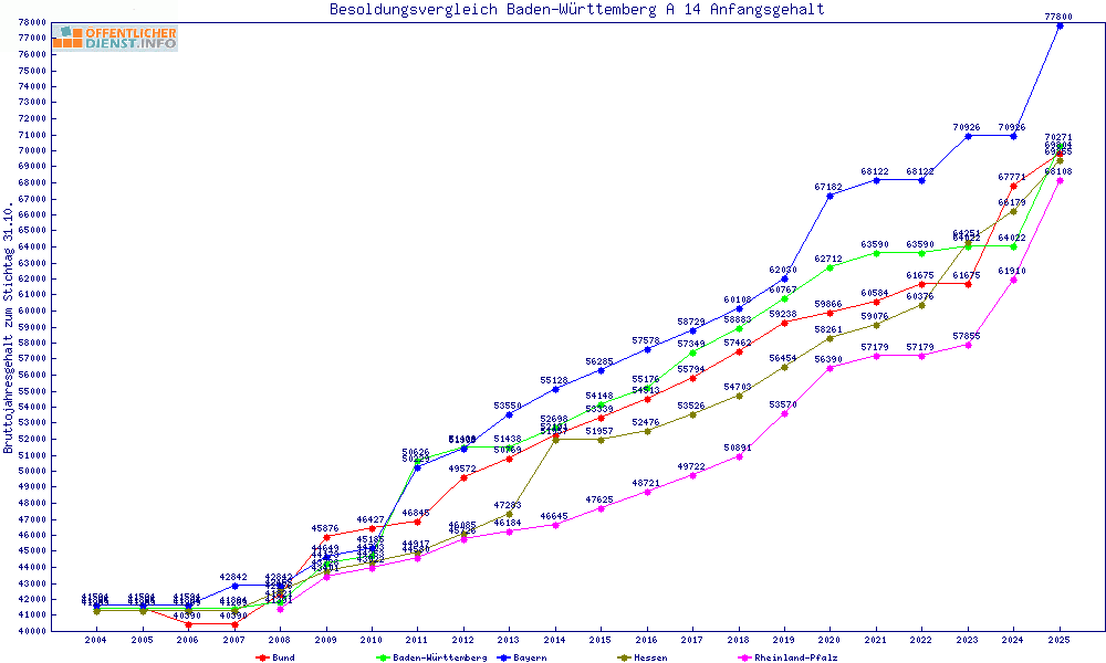 | Besoldungsvergleich A 14 im Jahr 2025 | Anfangsgehalt | ||||||