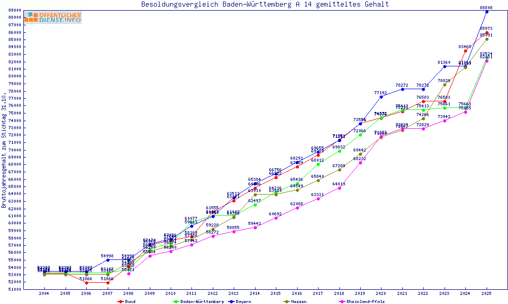 | Besoldungsvergleich A 14 im Jahr 2025 | gemitteltes Gehalt | ||||||