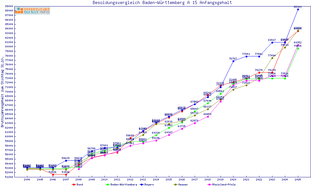 | Besoldungsvergleich A 15 im Jahr 2025 | Anfangsgehalt | ||||||