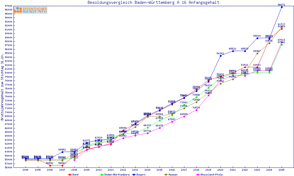| Besoldungsvergleich A 16 im Jahr 2025 | Anfangsgehalt | ||||||