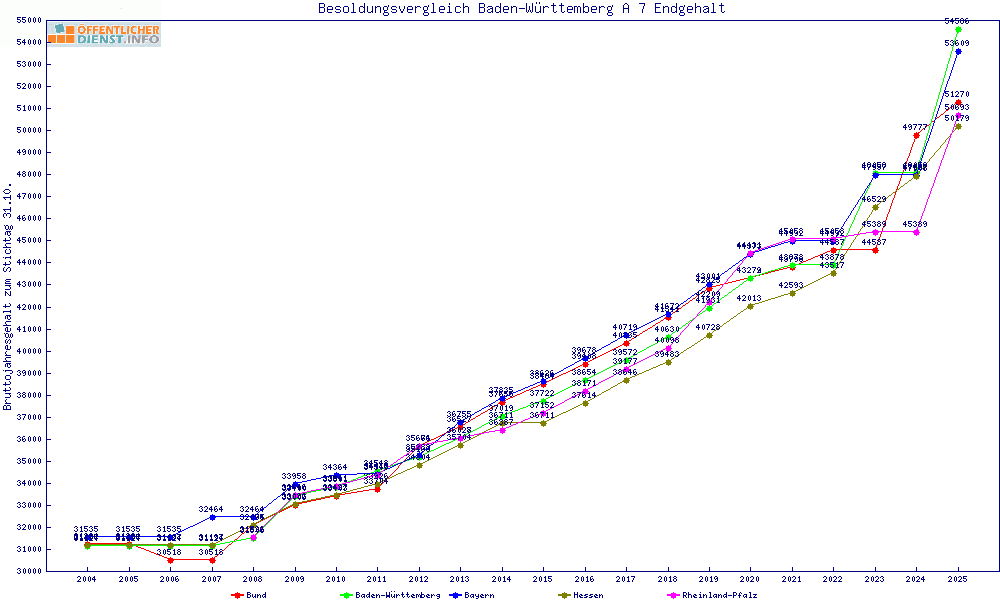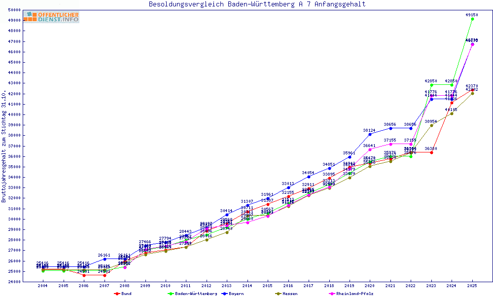 | Besoldungsvergleich A 7 im Jahr 2025 | Anfangsgehalt | ||||||