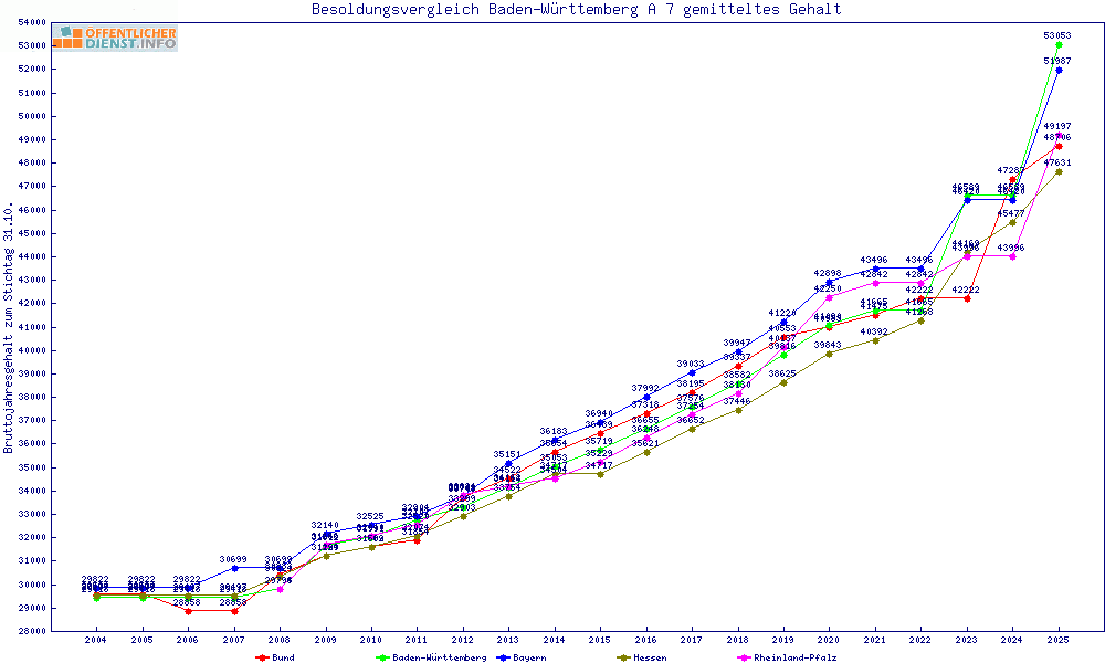 | Besoldungsvergleich A 7 im Jahr 2025 | gemitteltes Gehalt | ||||||