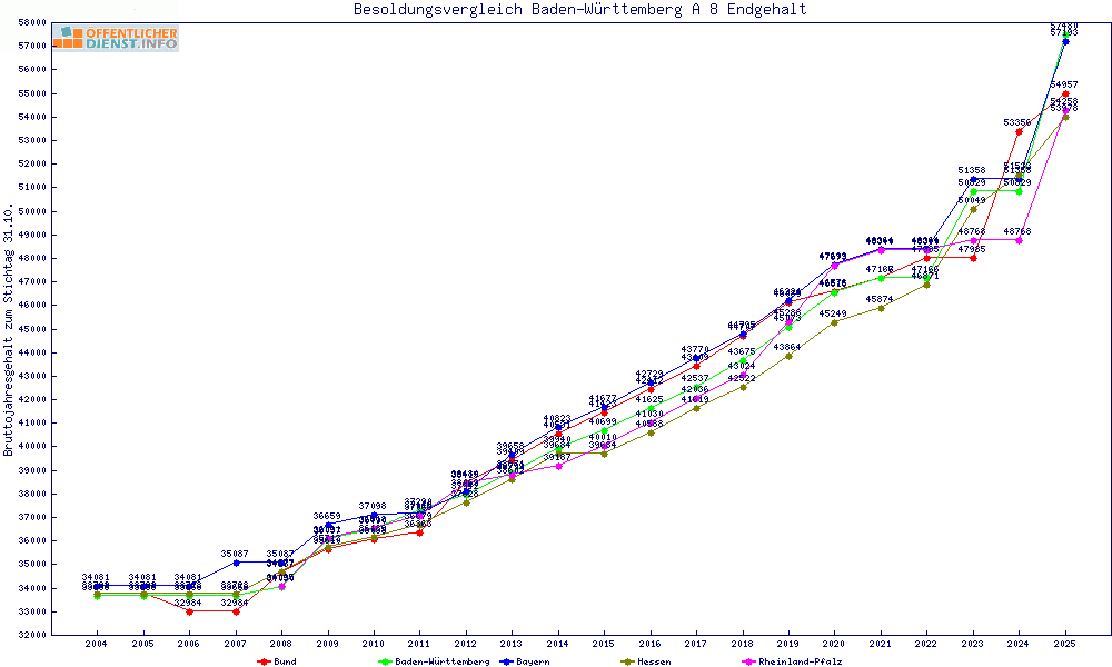 | Besoldungsvergleich A 8 im Jahr 2025 | Endgehalt | |||||||