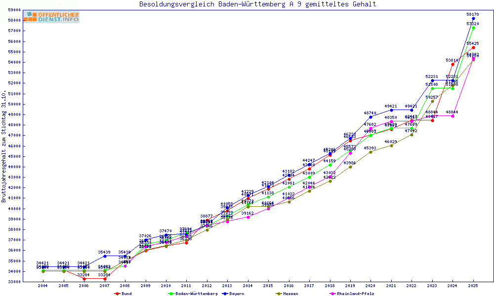 | Bayern | 60.978 € | +1064 € | +1.8% | +2330 € | +4.0% | 24 Jahre | ||