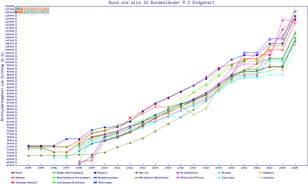 | Besoldungsvergleich R 2 im Jahr 2025 | Endgehalt | |||||||