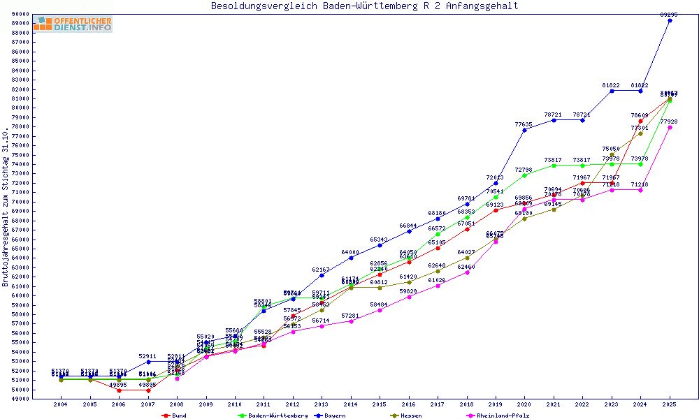 | Besoldungsvergleich R 2 im Jahr 2025 | Anfangsgehalt | ||||||