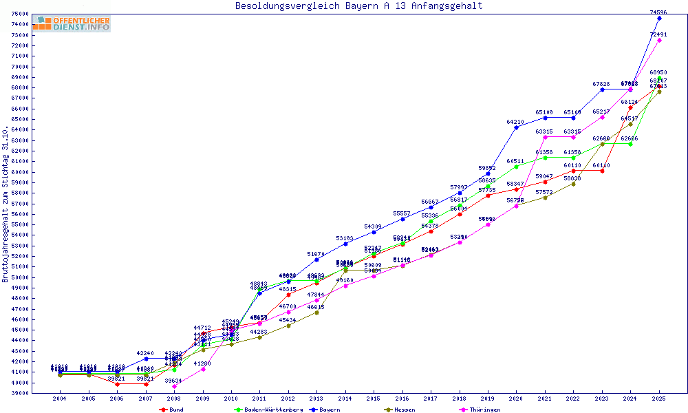 | Besoldungsvergleich A 13 im Jahr 2025 | Anfangsgehalt | ||||||