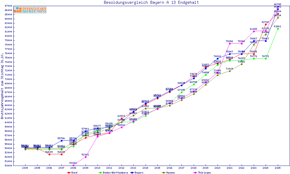 | Bayern | 86.243 € | +2953 € | +3.5% | 21 Jahre | ||||