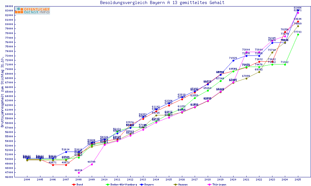 | Besoldungsvergleich A 13 im Jahr 2025 | gemitteltes Gehalt | ||||||