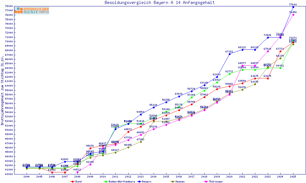 | Besoldungsvergleich A 14 im Jahr 2025 | Anfangsgehalt | ||||||