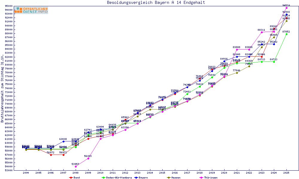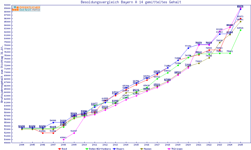 | Besoldungsvergleich A 14 im Jahr 2025 | gemitteltes Gehalt | ||||||