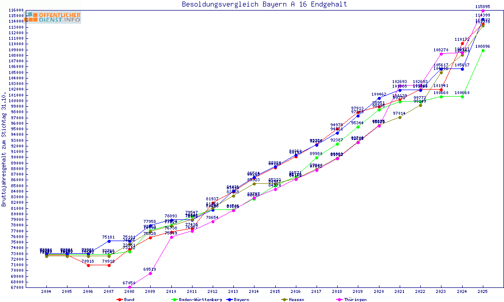 | Besoldungsvergleich A 16 im Jahr 2025 | Anfangsgehalt | ||||||