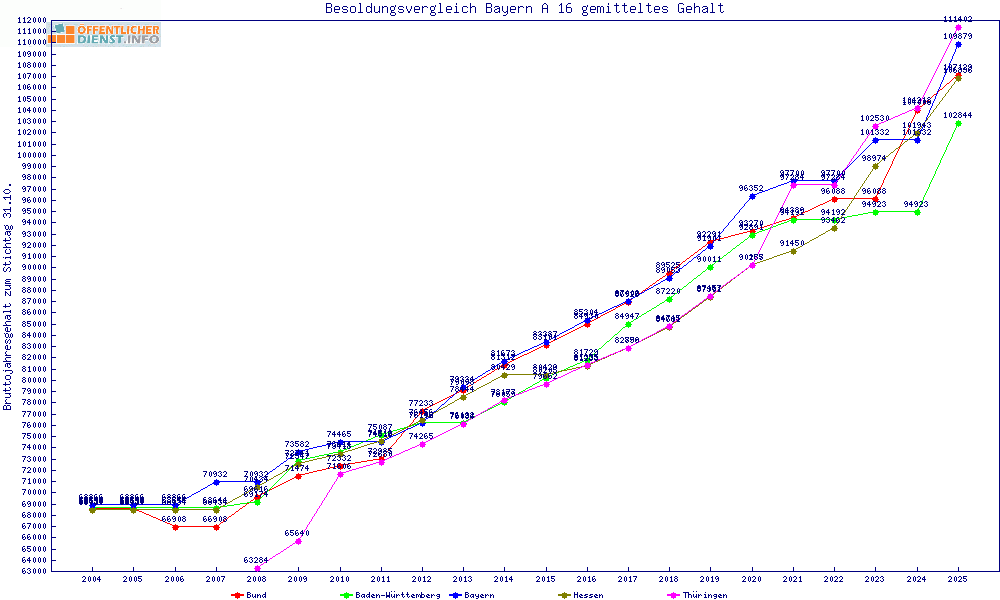 | Besoldungsvergleich A 16 im Jahr 2025 | gemitteltes Gehalt | ||||||
