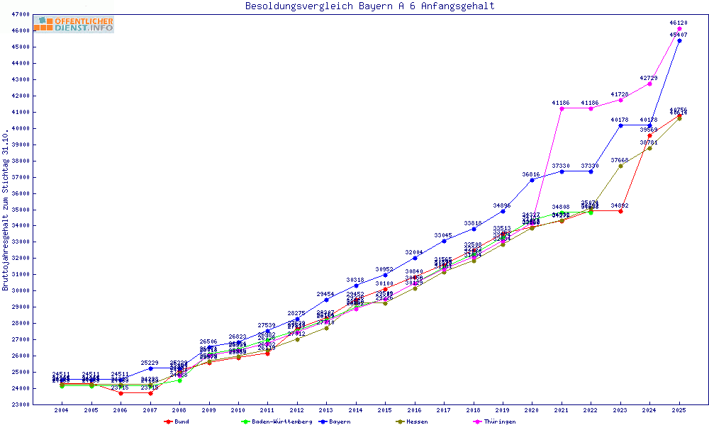| Besoldungsvergleich A 6 im Jahr 2025 | Anfangsgehalt | ||||||