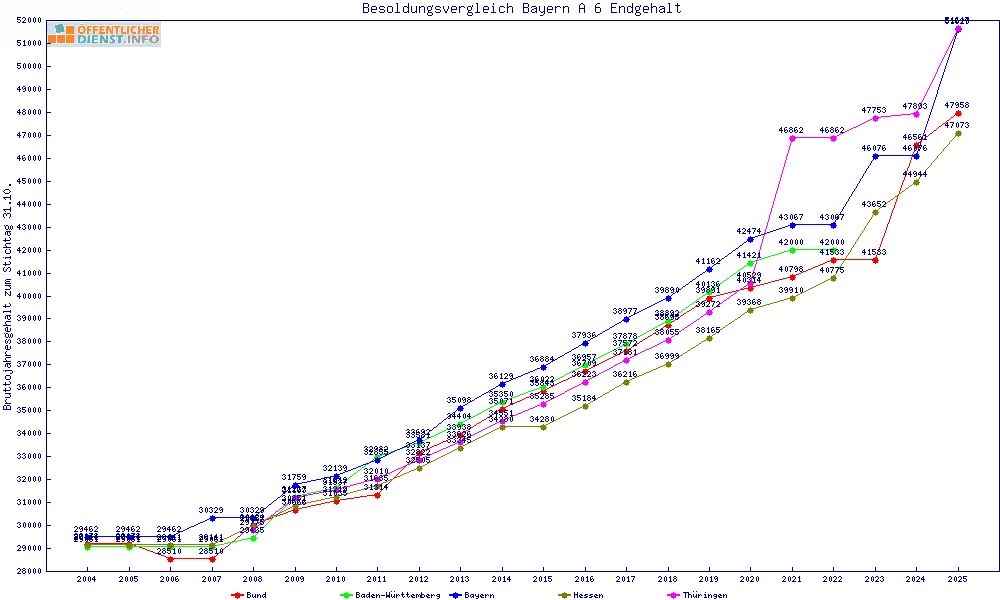 | Besoldungsvergleich A 6 im Jahr 2025 | Endgehalt | |||||||