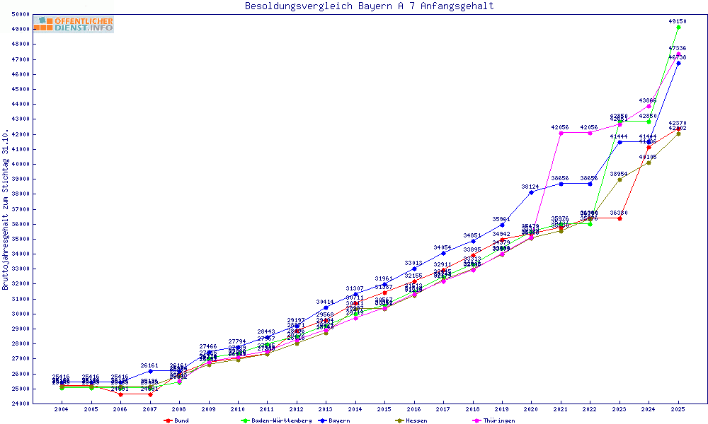 | Besoldungsvergleich A 7 im Jahr 2025 | Anfangsgehalt | ||||||