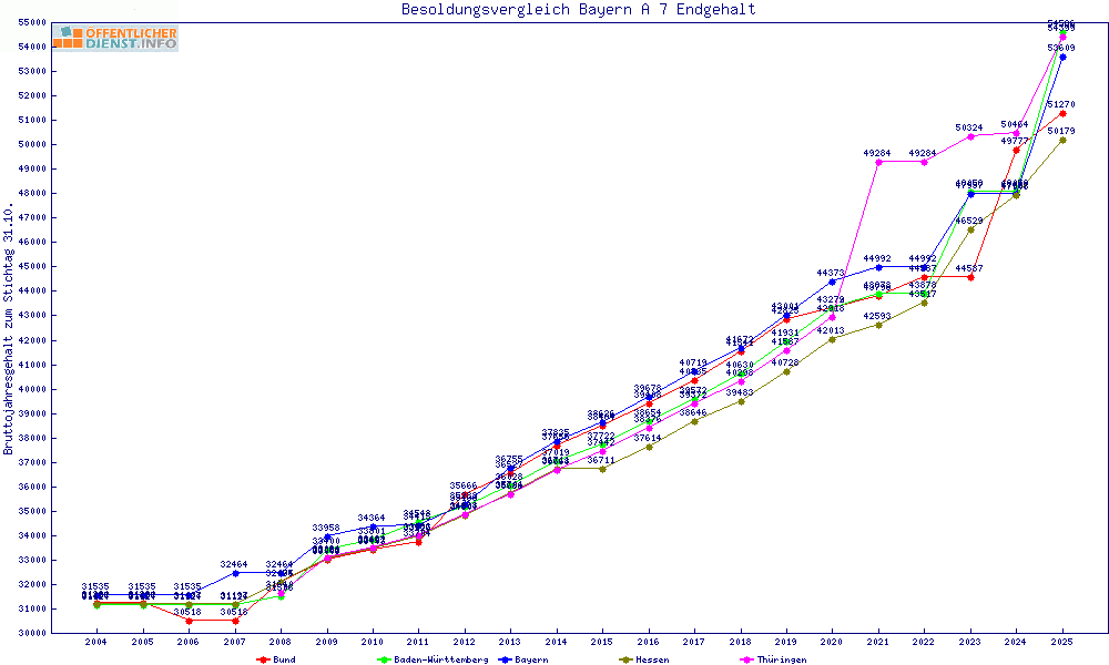 | Besoldungsvergleich A 7 im Jahr 2025 | Endgehalt | |||||||