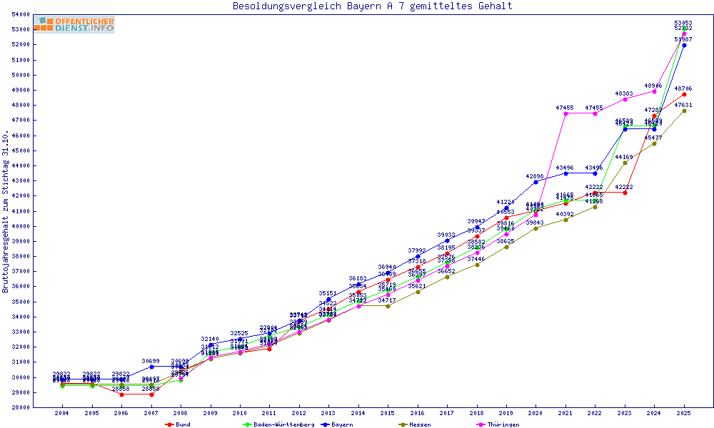 | Besoldungsvergleich A 7 im Jahr 2025 | gemitteltes Gehalt | ||||||