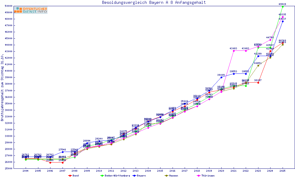 | Besoldungsvergleich A 8 im Jahr 2025 | Anfangsgehalt | ||||||
