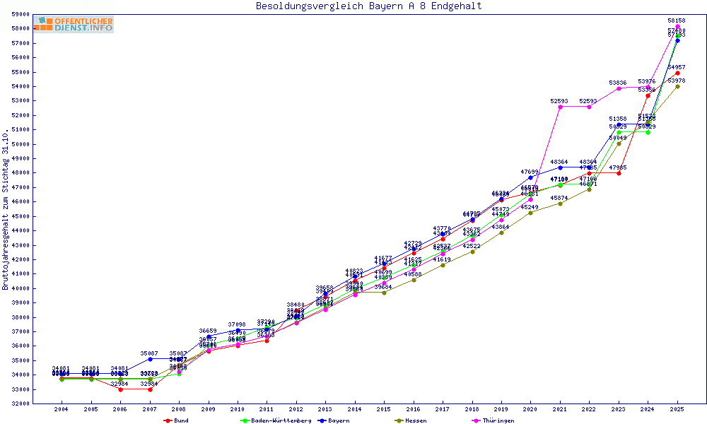 | Besoldungsvergleich A 8 im Jahr 2025 | Endgehalt | |||||||