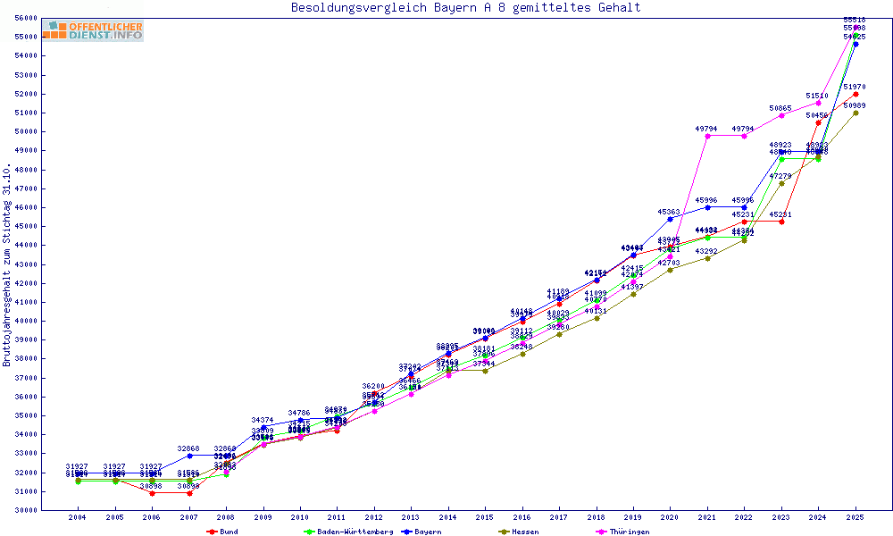 | Besoldungsvergleich A 8 im Jahr 2025 | gemitteltes Gehalt | ||||||