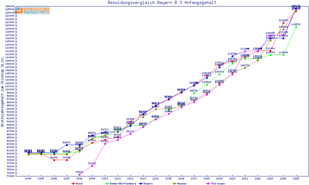 | Besoldungsvergleich B 3 im Jahr 2025 | Anfangsgehalt | ||||||