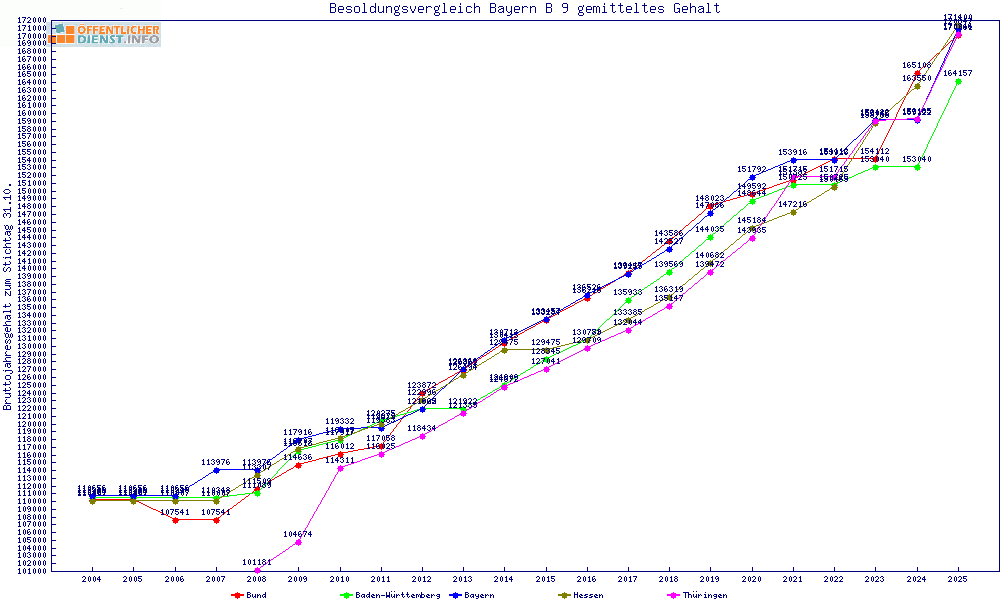| Besoldungsvergleich B 9 im Jahr 2025 | gemitteltes Gehalt | ||||||