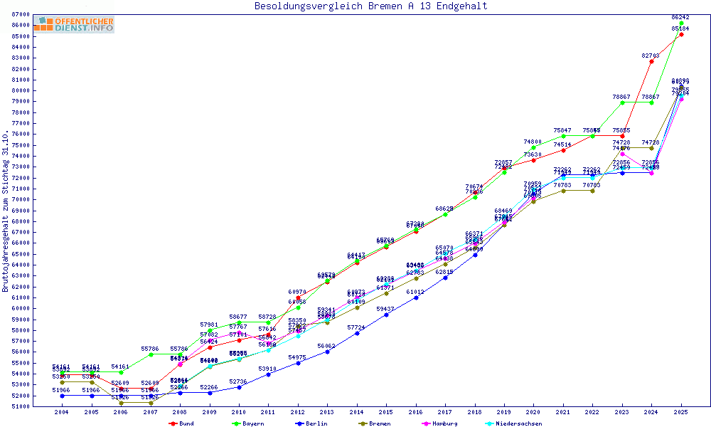 | Jahresgehalt brutto | im Vergleich mit Bremen |