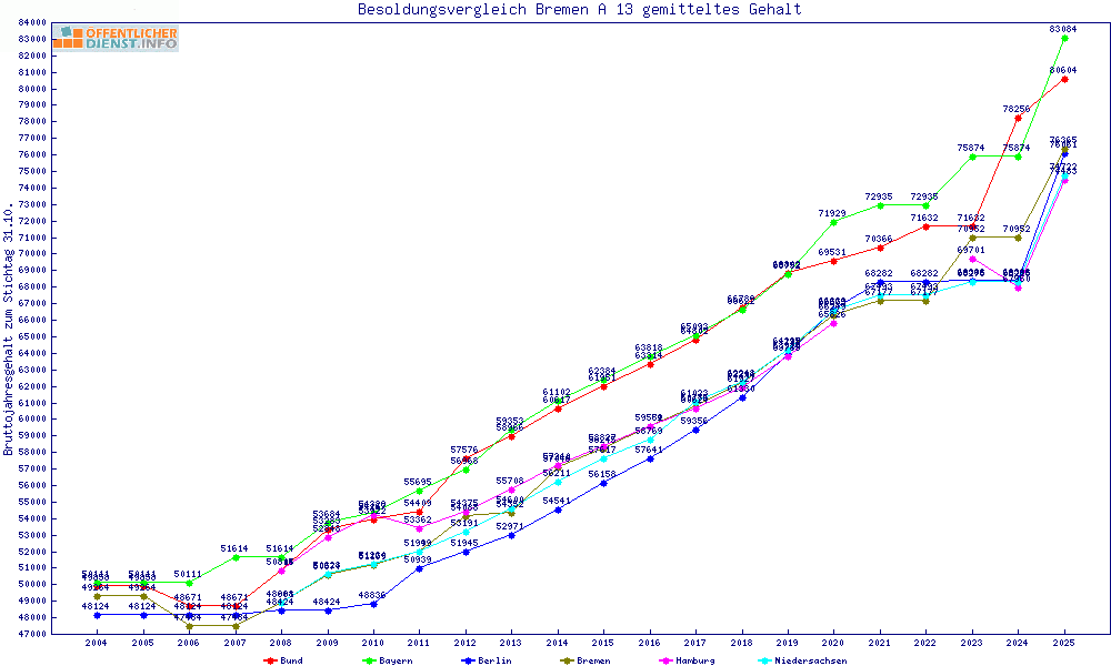 | Besoldungsvergleich A 13 im Jahr 2025 | gemitteltes Gehalt | ||||||