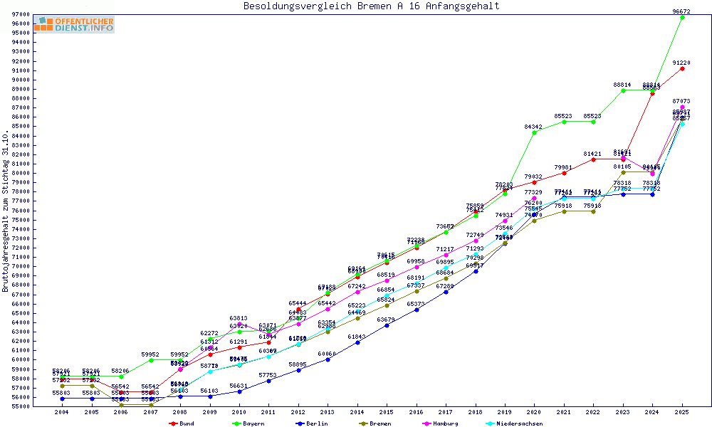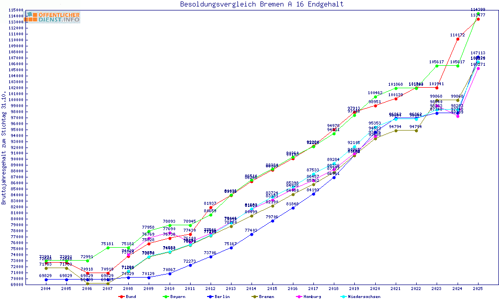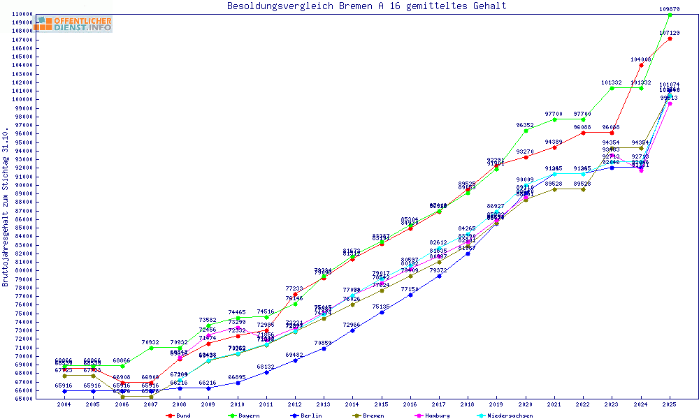 | Besoldungsvergleich A 16 im Jahr 2025 | Anfangsgehalt | ||||||