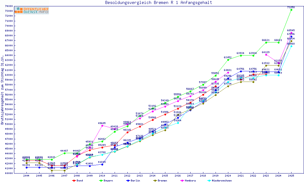 | Jahresgehalt brutto | im Vergleich mit Bremen |