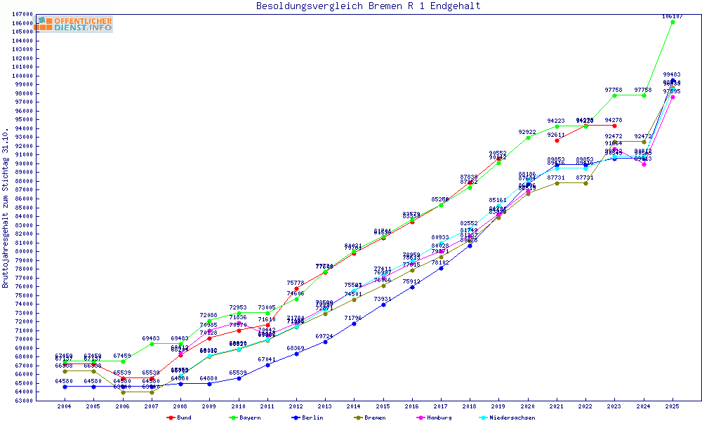 graphischer Besoldungsvergleich gemitteltes Gehalt aller Bundesländer
